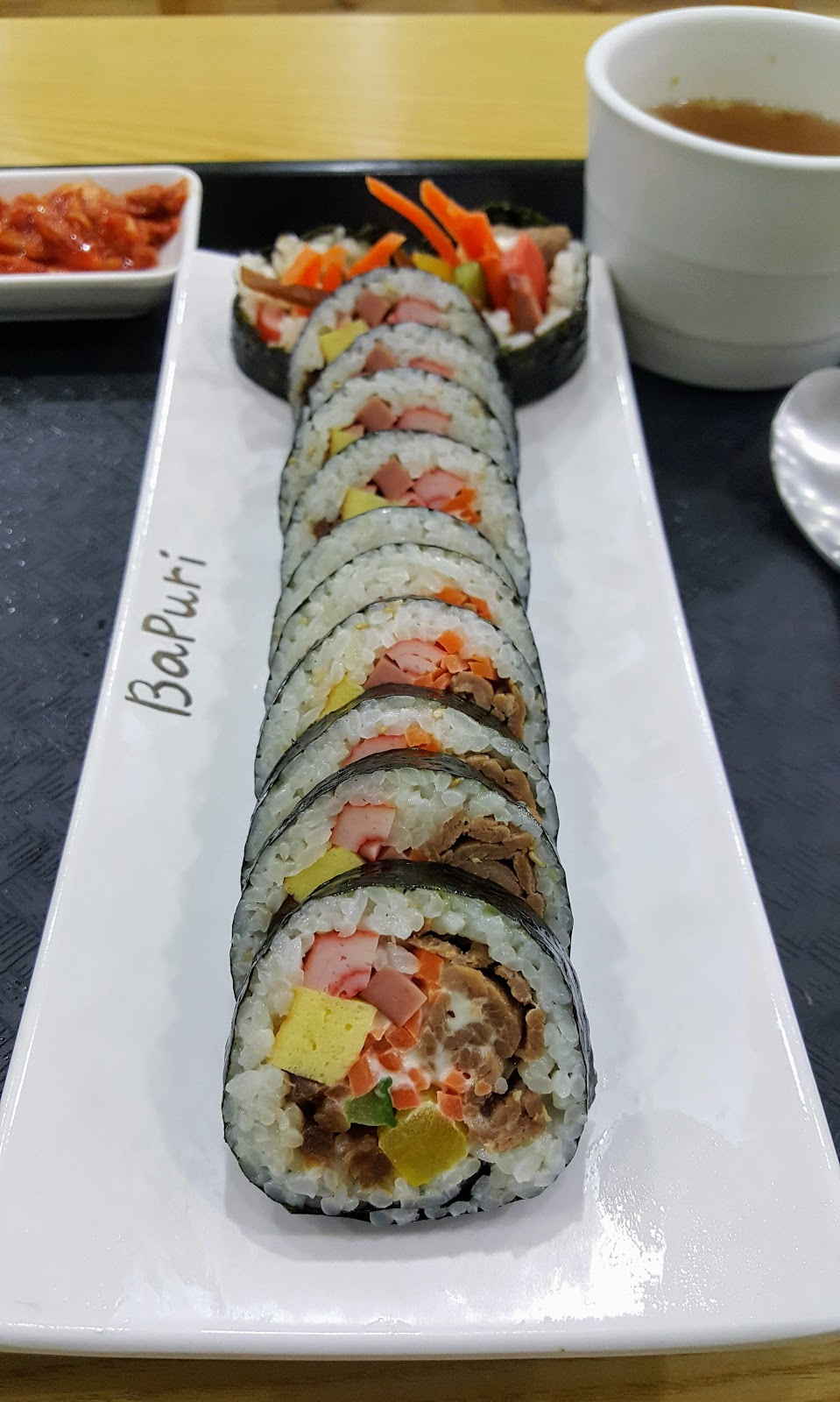 우섯 숯불 김밥이 먼저 나왔다. 김밥 치곤 가격이 조금 비싼편이지만 내용물이 알차서 납득할 수준.